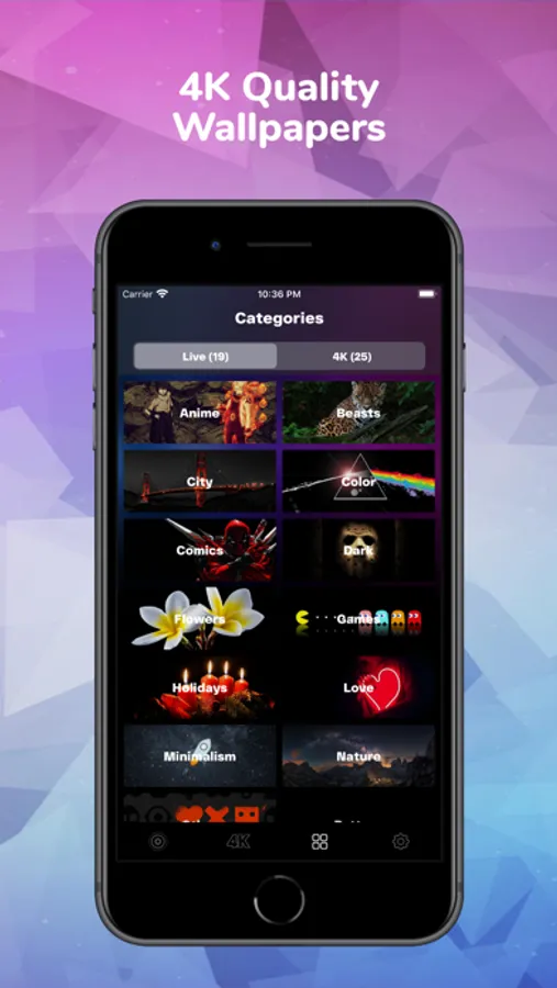In our application there are live and 4k wallpapers, each wallpaper has a variety of categories, where everyone can find wallpapers to their liking. We update our wallpaper database frequently, so you will always have new high quality wallpapers!