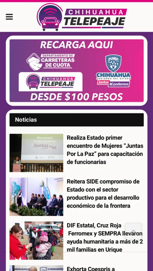 Telepeaje es la aplicación que permite a los usuarios con tag prepago recargar saldo de manera rápida. El tag prepago les permite a los usuarios moverse sin detenerse por las autopistas del Estado de Chihuahua, utilizando los carriles exclusivos de las casetas de peaje.