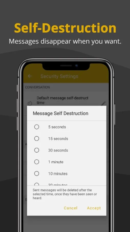 You can set a custom self-destruct time for messages you send to your contacts, even if the self-destruct time configuration of your contact is different.