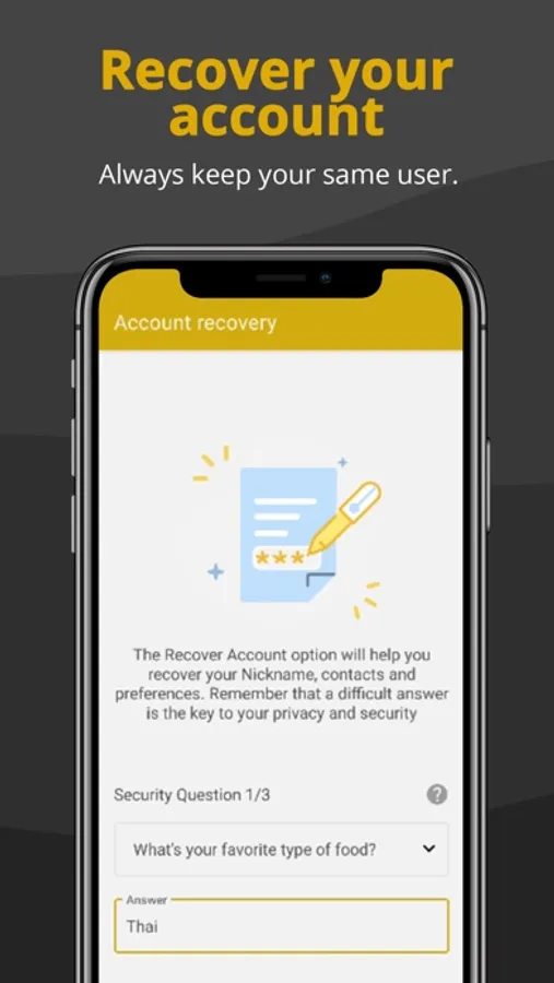 You will be able to recover your account in case of loss or change of your mobile phone only answering the security questions that you have registered.