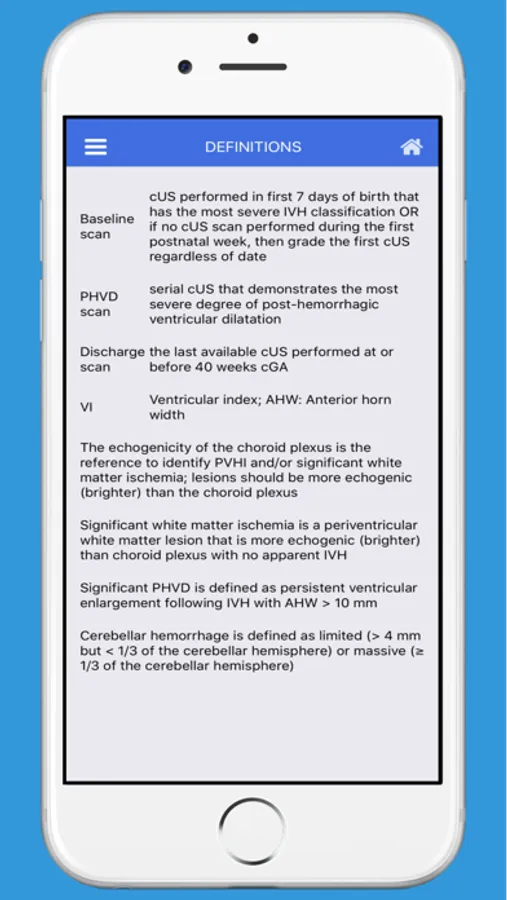 This application is based on a consensus viewpoint guideline developed by a taskforce of neonatologists and radiologists across Canada. The aim of the decision-making tool is to help with interpretation and reporting of consultative diagnostic ultrasound exams of the neonatal brain. The decision tree and brain injury scoring sheets are created to assist with the identification and recording of select imaging features in a uniform manner for benchmarking, auditing and quality improvement purposes.