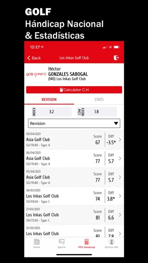- Conexion con el hándicap de la Asociacion Nacional de Golf