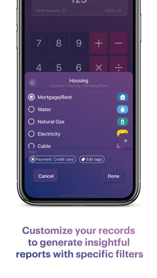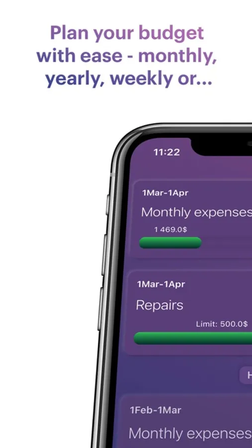 • 3) Stay on top of your spending with customized restrictions on categories, tags, and accounts. Set up automatic repetition for regular expenses, whether it's weekly or monthly.