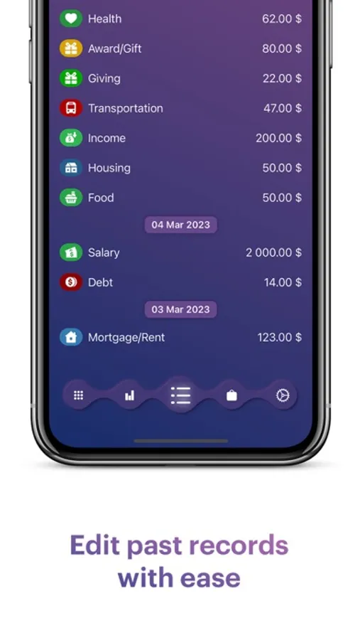 • 8) Edit your transaction records easily and quickly, even for past records, to keep your financial records accurate and up to date.