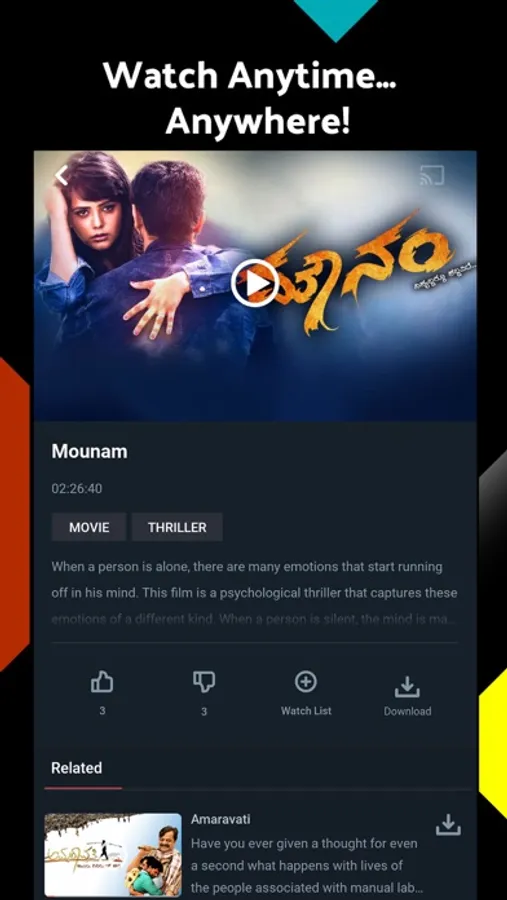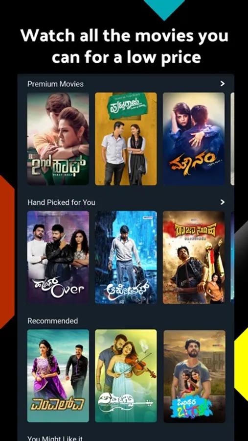 Movies: Ever-growing catalog of Popular Kannada movies catering to different categories, age groups, and genres from classics to latest blockbusters.