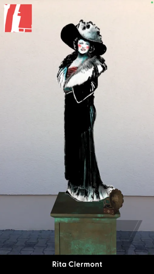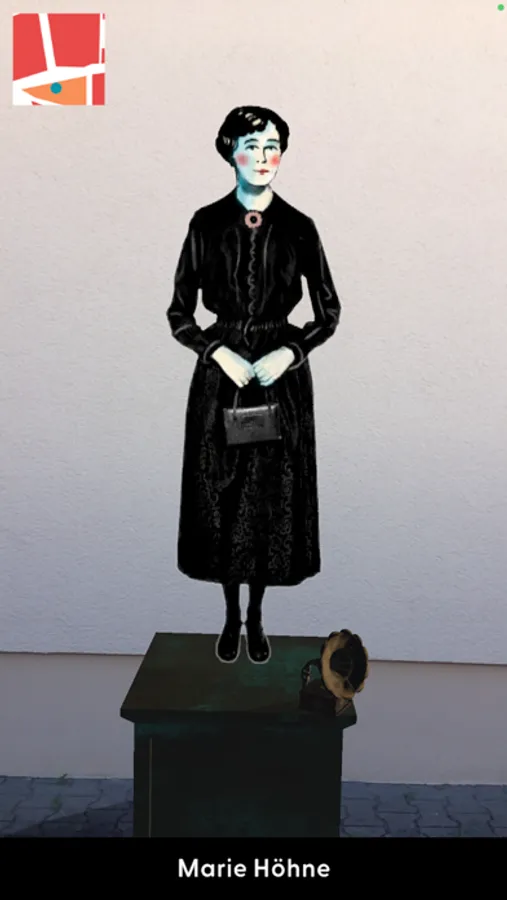 KAMERA: Sobald die Kamera auf einen leeren Sockel gehalten wird, erscheint eine Frauenstatue automatisch. Ein Grammophon auf dem Sockel spielt die Biografie ab.