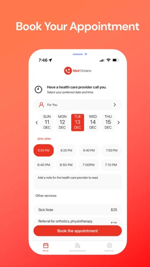 Med Ontario allows Ontario residents to enjoy the convenience of having a health care provider at their fingertips! Quickly and easily book an appointment with a health care professional for any of your health needs.