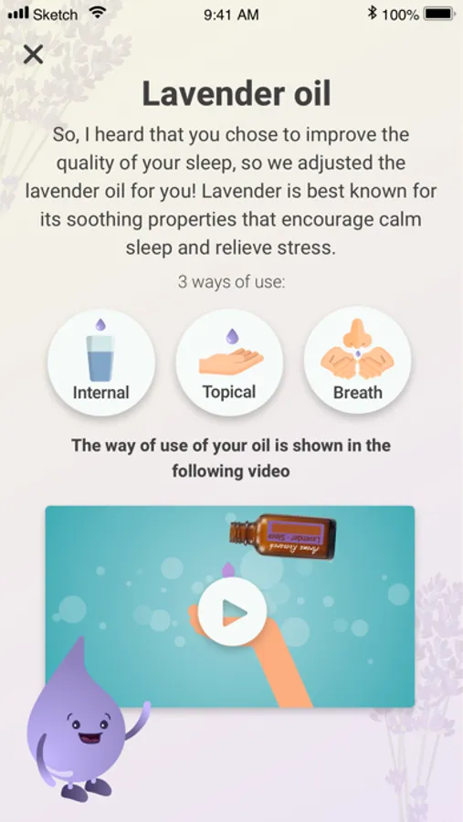 The application will serve you for 7 days in which you will be able to learn how to use essential oils on a daily basis. You can learn about the properties and descriptions of essential oils, watch videos, listen to podcasts, read books and articles about essential oils, and do daily missions that later on will be rewarded by prizes.