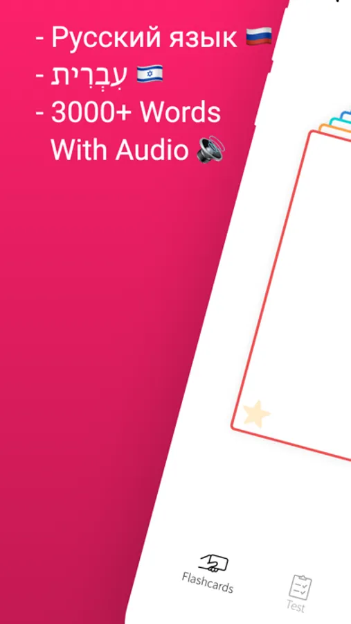 Whether you're a beginner or an advanced learner, our app offers three dynamic features to accelerate your progress: Flashcards, Word Tests, and the exciting Match Game. Start your language journey today and become a fluent communicator in both Russian and Hebrew!"