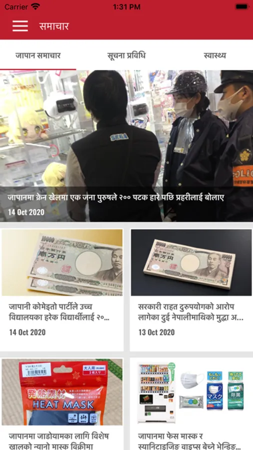 2. News - You will get Japan News, Nepal News, World News , Tech News , Sports News and Weather News in this section.