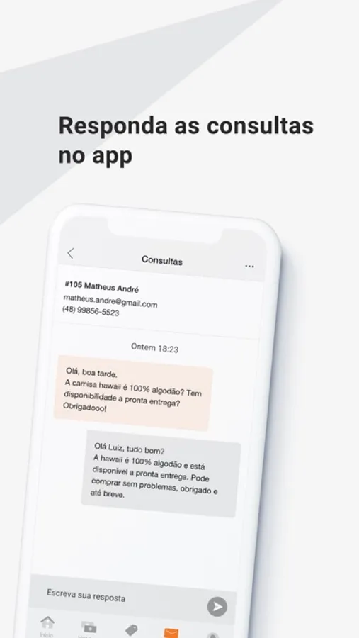 Administre sua loja online de qualquer lugar. Gerencie suas vendas, controle seu estoque e responda perguntas dos visitantes a qualquer hora, onde você estiver.