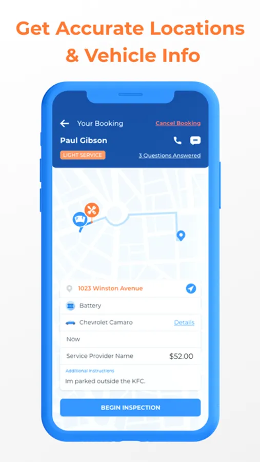 The Driver App will provide the specs you need including a vehicle’s VIN Number, make, model and trim. Customers also answer situational questions during the booking process which let Drivers know exactly what to expect before arriving on scene.