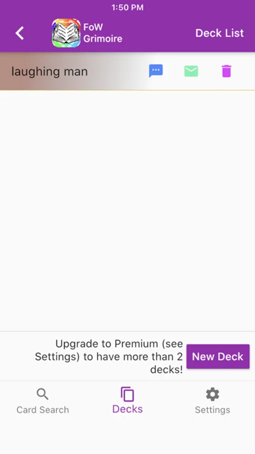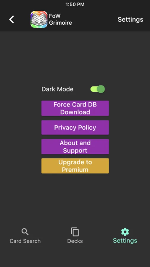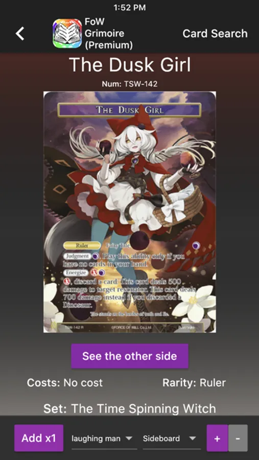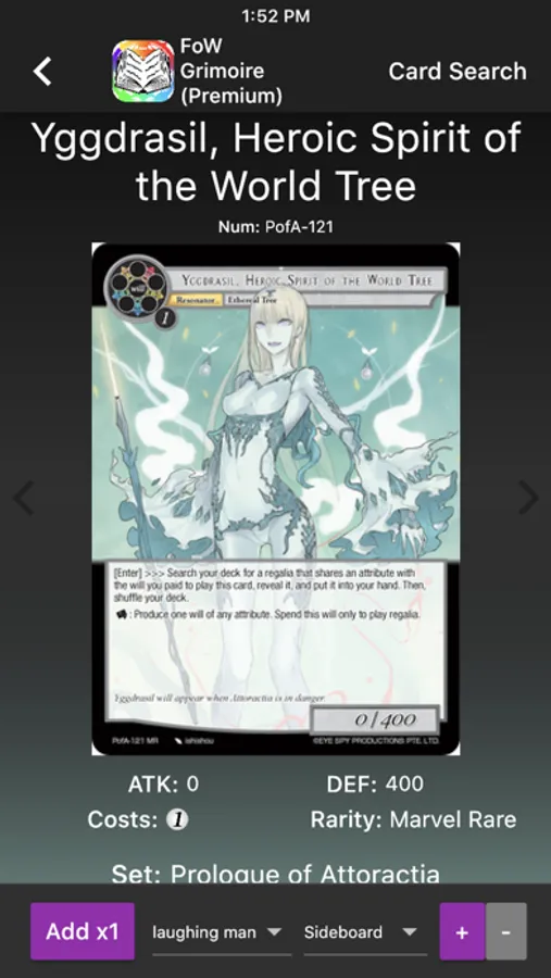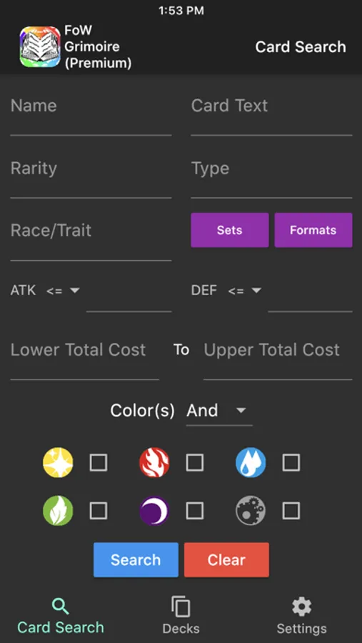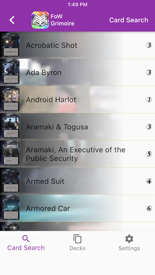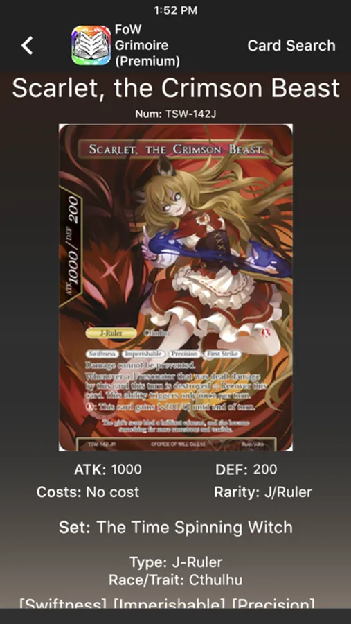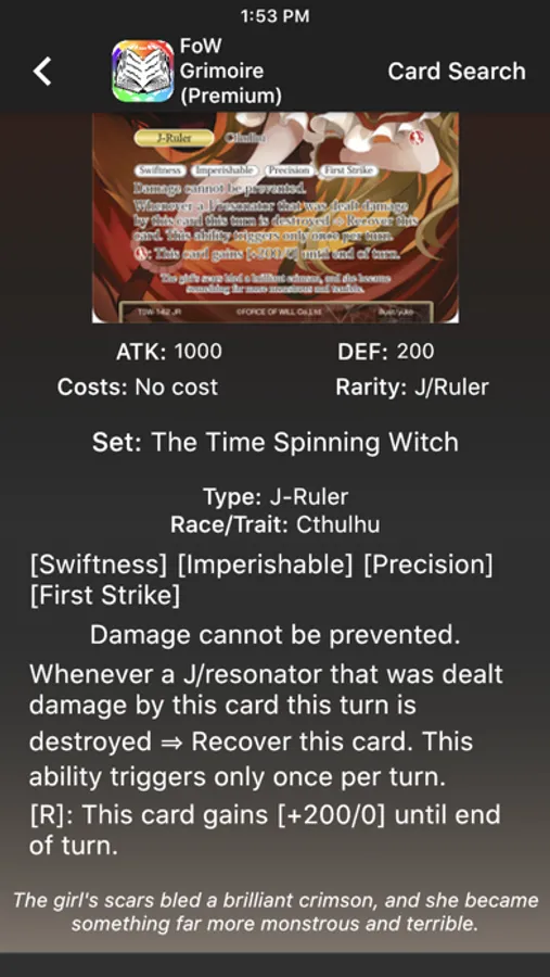 FoW Grimoire is a deck building app for Force of Will (FoW) - providing a sleek user interface to find cards and then build your decks.