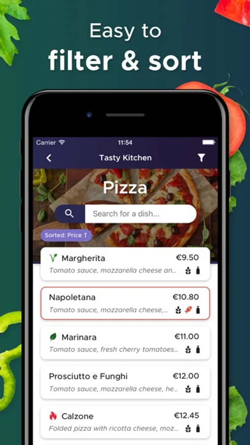 Would you like to filter the menu card for vegetarian, vegan or spicy dishes? Nothing easier than that!