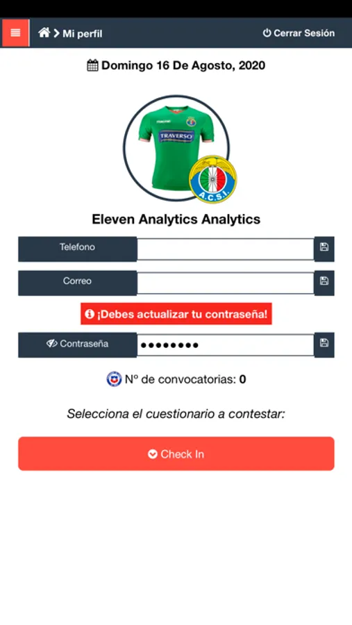 App móvil que permite ingresar al portal de jugadores(as) del club Audax Italiano