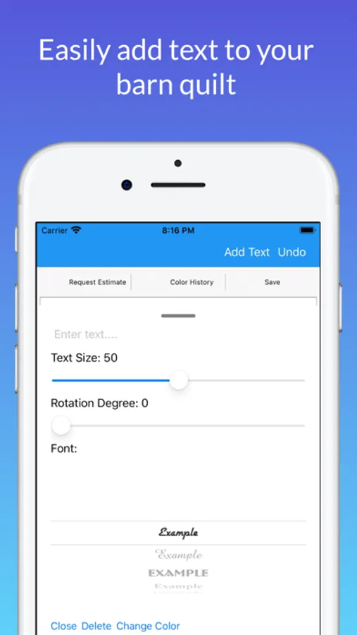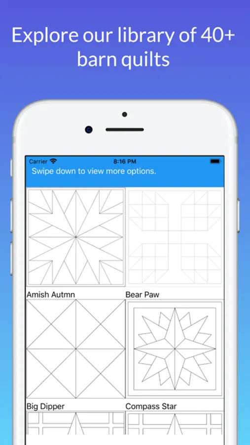 Barn quilts are popping up everywhere. Not just for barns and farms, barn quilts are American art for indoors or out...a front porch, garden shed, fence or over a fireplace mantle. With our app, you can be on your way to designing your own custom piece of art.