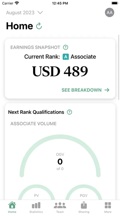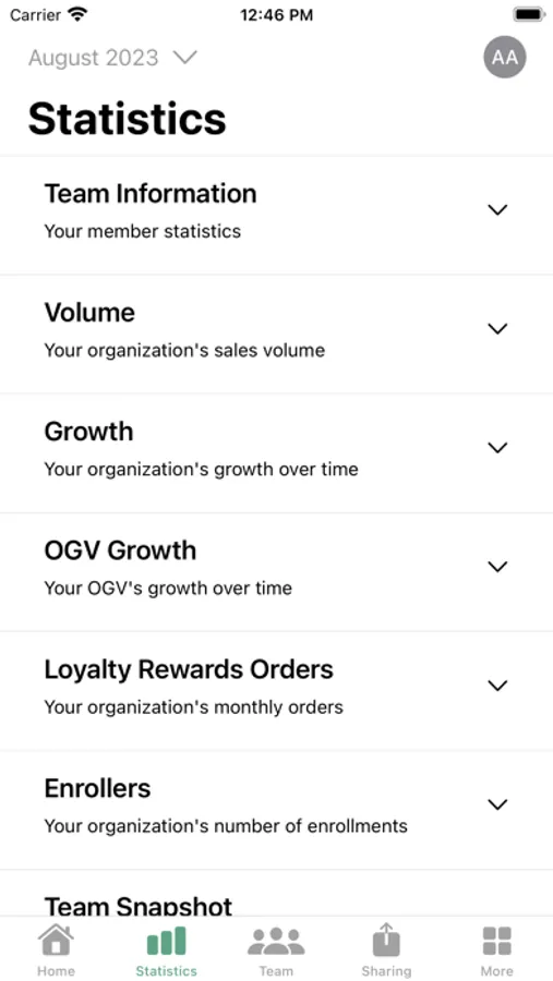 • See a statistical snapshot of your Team including volumes, organizational growth, Autoship (Subscribe to Save) Status Enrollments and more