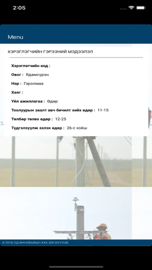 Хувь хүн, аж ахуйн нэгж цахилгааны хэрэглээний мэдээлэл , төлбөр төлөх болон бусад мэдээллийг авах боломжтой.