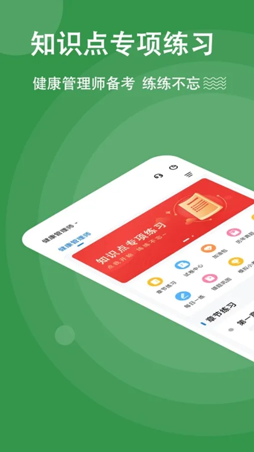 健康管理师考试备考王牌APP,死了都要爱的健康管理师刷题体验,独得用户恩宠,数万用户推荐,健康管理师考试用户都在用的题库学习APP!