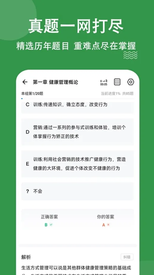 【智能测验】智能测验引入准人工智能分析,照亮你的健康管理师备考路。