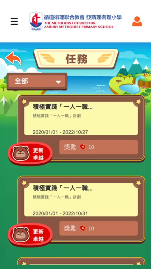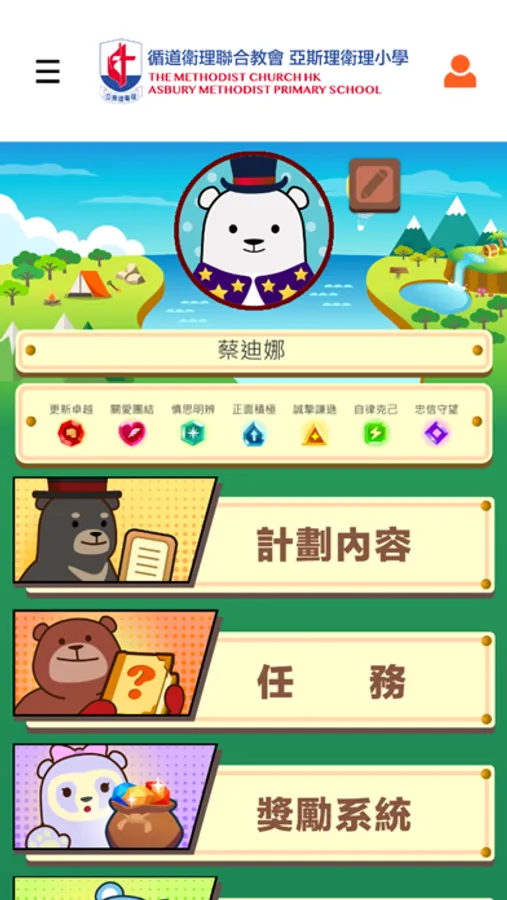 「亞小英熊聯盟」代表着亞小七大生命素質及正面品格,校園內佈置了不同類型的學習及成長任務。學生只要完成任務,便能尋回不同顏色的生命寶石,當累積的生命寶石越多,便代表亞小同學的學習及生命成長修行越見成功,邁向「做最好的我」的目標!