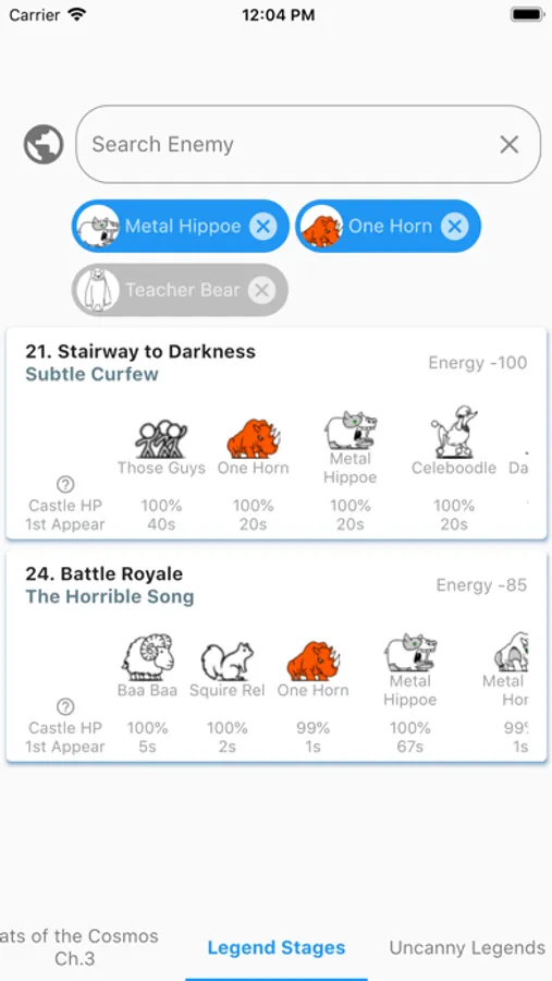 Search Stage for Monthly/Bounty hunter Missions, The Battle Cats Game.