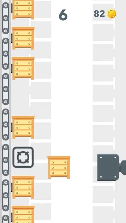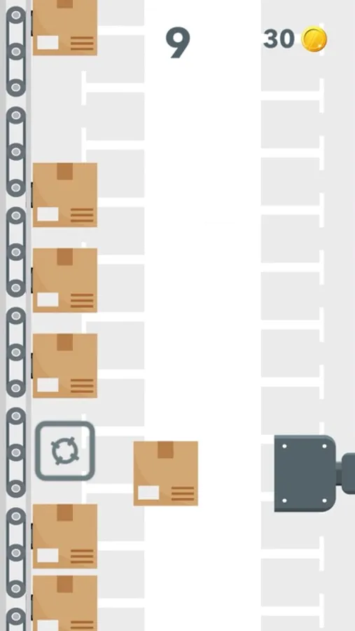 Keep the factory line going! Shoot the boxes into the assembly line and see how far you can go. Gain coins by placing boxes perfectly and use them to unlock more boxes!