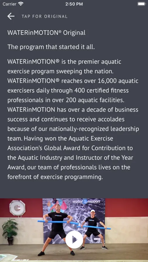WATERinMOTION® is a pre-choreographed, quarterly-released group aqua exercise program that refreshes the moves, music, and member experience every three (3) months through new choreography videos, downloadable 55 minutes of music, complete choreo booklet, flashcards, and one (1) page choreo quick guide with stellar banners, posters, and marketing kits. WATERinMOTION® includes three (3) FREE Certifications (online & live) featuring leaders with over 100 years of combined teaching experience guaranteeing a safe, structured and creative class with 3 distinct programs to choose from: Original, Platinum, and Strength.