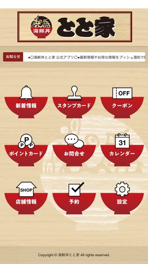 『海鮮丼 とと家』からのお知らせや会員様限定の通知情報が届きます。