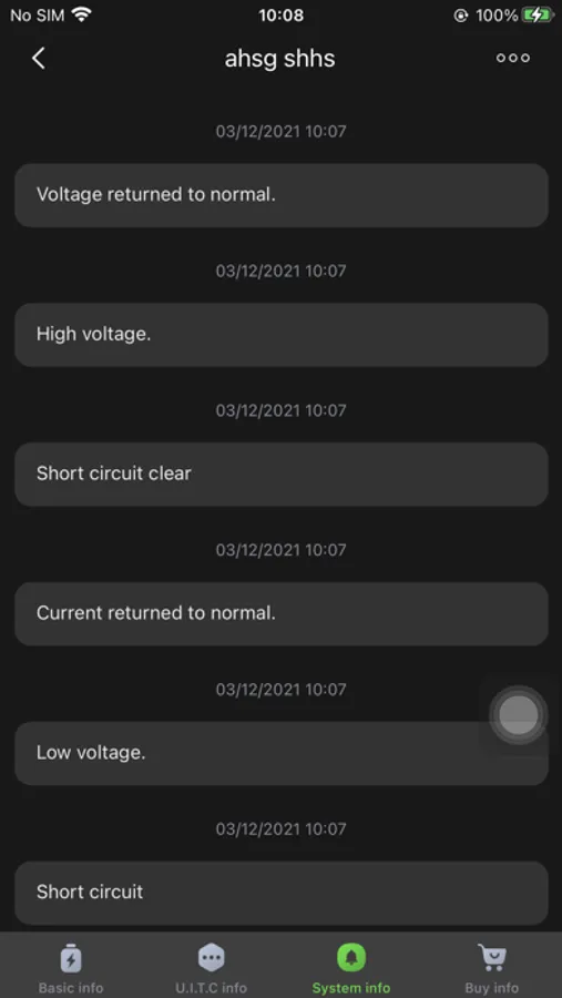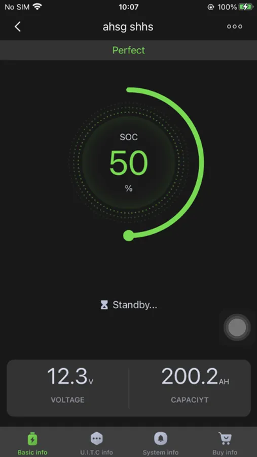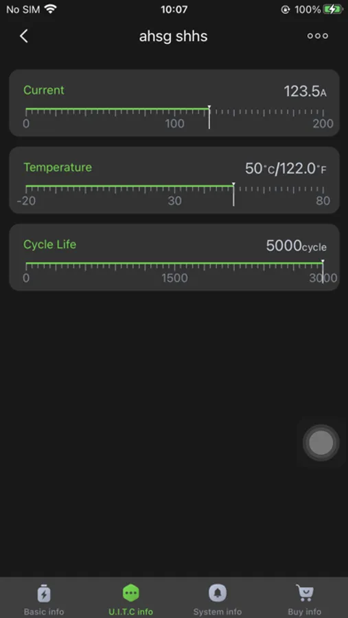 * Displays State Of Charge (SOC) percentage with circle graphic.