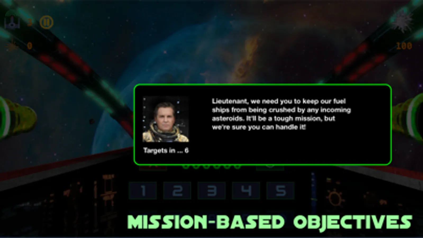 Things start off easy, but the pace picks up as you progress. Each level is a series of waves of asteroids presenting equations in addition, subtraction, multiplication, and division. Some levels include all types of equations at once.