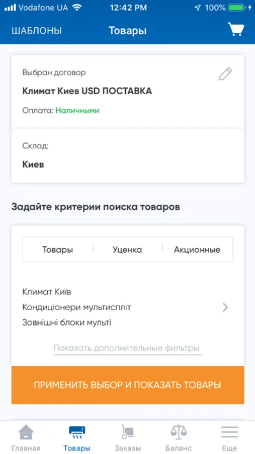 Торговая платформа позволяет формировать товарные остатки по номенклатуре, создавать заказы, просматривать подробное описание номенклатуры.