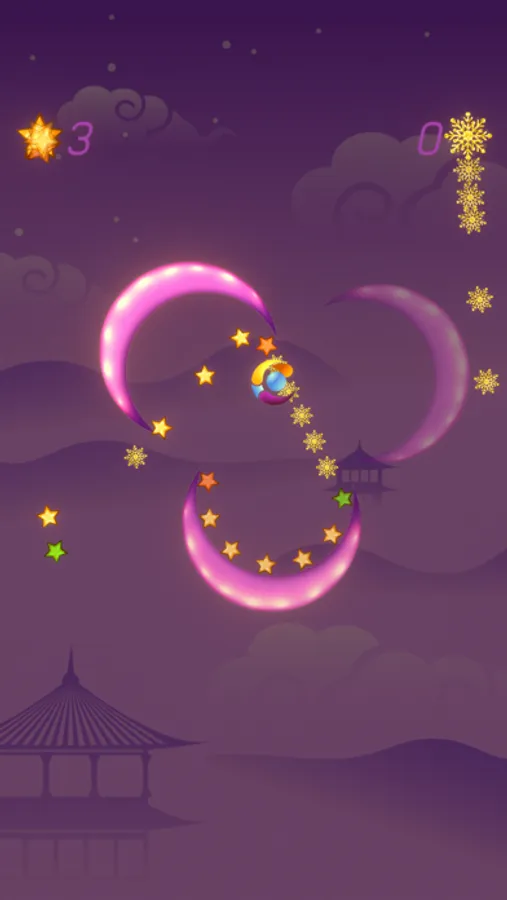 ◉When the Player fly close the crescent, tap the screen to harvest the stars