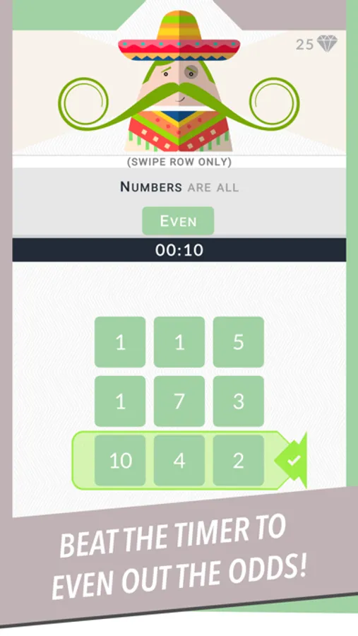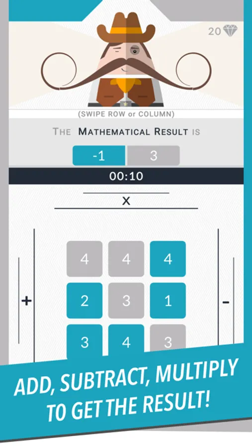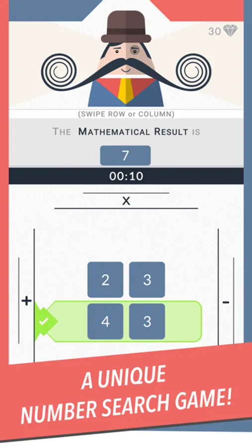 We give you a grid of numbers using just these four numbers & a result. Swiping left to right is addition, swiping right to left is subtraction & swiping from top to bottom is multiplication. All that you have to do is to figure out the correct row or column & the correct direction of swipe that will produce the given result.