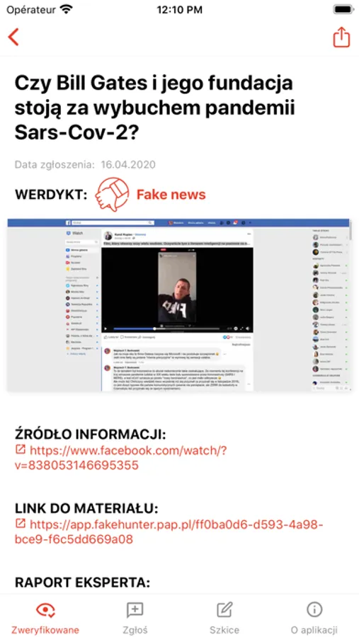 Za pomocą aplikacje #FakeHunter każdy internauta może zgłosić wątpliwą treść do weryfikacji, a następnie otrzymać wiarygodną odpowiedź w postaci werdyktu i raportu weryfikującego prawdziwość zgłoszonej publikacji przygotowanych przez społecznych liderów opinii oraz ekspertów PAP.