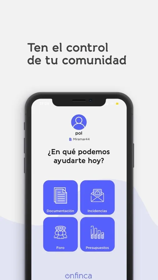 Onfinca es la app que te permite digitalizar tu comunidad. Puedes realizar desde consultas a documentos, hasta pedir presupuestos a industriales. Pasando por foro de preguntas, o control sobre incidencias que vayan ocurriendo. ¡Muévete a la comunidad del siglo XXI!