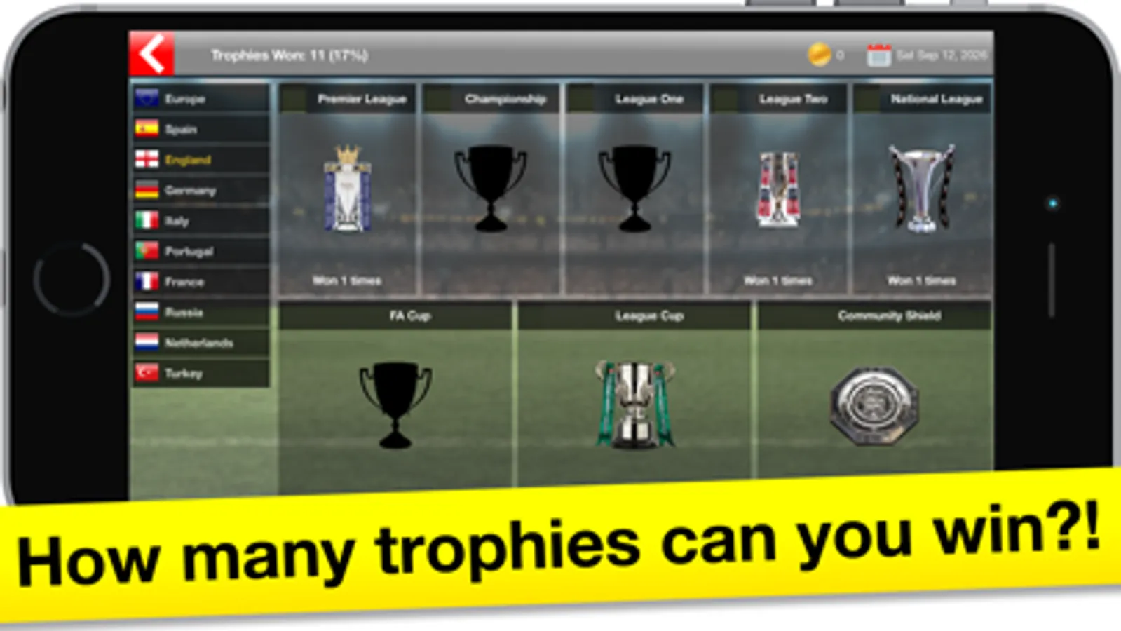 There are 750 clubs to manage across 9 European countries including England, Spain, Germany, Italy, France, Russia, Portugal, Turkey and the Netherlands. Each country has realistic league and cup competitions, meaning there are 64 trophies to compete for in total – how much silverware can you win?!