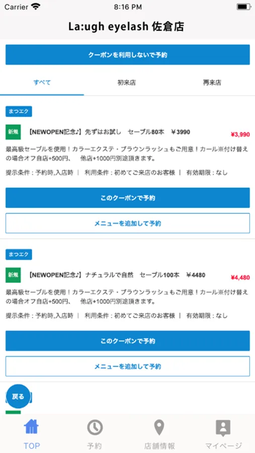 お得なクーポンが配信されます。ネット予約時にクーポン利用での予約も可能なので来店時もスムーズに施術頂けます。