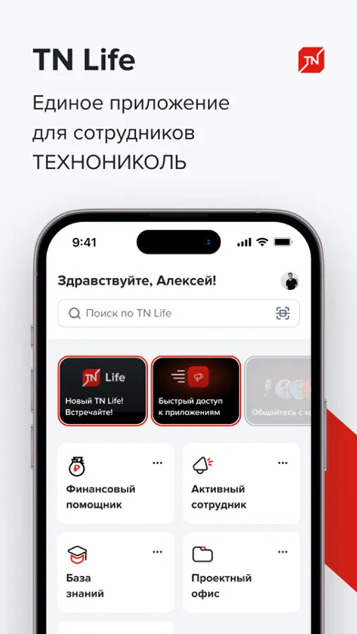 TN Life – единое приложение для ежедневной работы и общения сотрудников ТЕХНОНИКОЛЬ. TN Life делает рабочий процесс более быстрым и удобным: решайте рабочие вопросы с коллегами в чатах, используйте полезные корпоративные сервисы и будьте в курсе новостей компании.