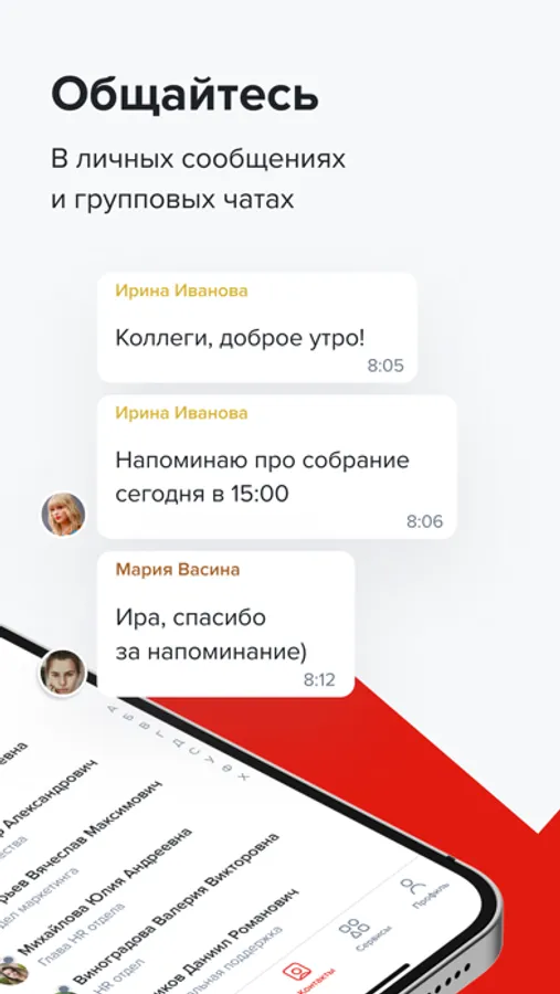 - Общайтесь с коллегами в онлайн-режиме по любым рабочим вопросам