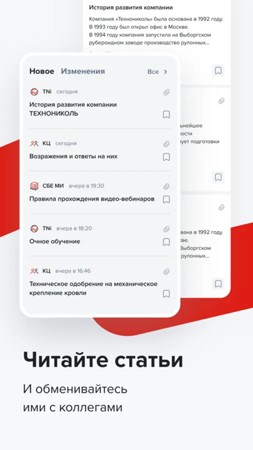 Получайте актуальную информацию о событиях внутри компании в своем личном информационном канале. Подписывайтесь на темы, которые вас интересуют, – от корпоративных и продуктовых новостей до уведомлений о днях рождениях ваших ближайших коллег и анонсов новых сервисов и инструментов. Обсуждайте новости с другими сотрудниками ТЕХНОНИКОЛЬ.