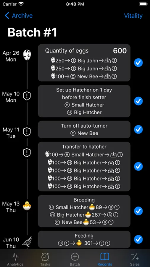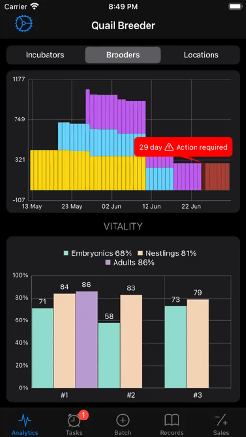 - A visual display of the load of the equipment used (incubators, brooders, cages) makes it easy to understand how effectively it is being used and to plan the farmer needs actions to expand his business