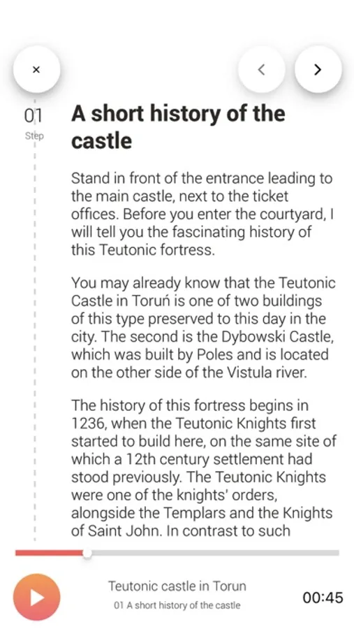 With the paid version, you receive four simulated private tour guides at a hugely discounted price! Listen to a treasure trove of information when visiting the Old Town or the mysterious old Teutonic Castle. Gain unconditional access to all future audioguides!