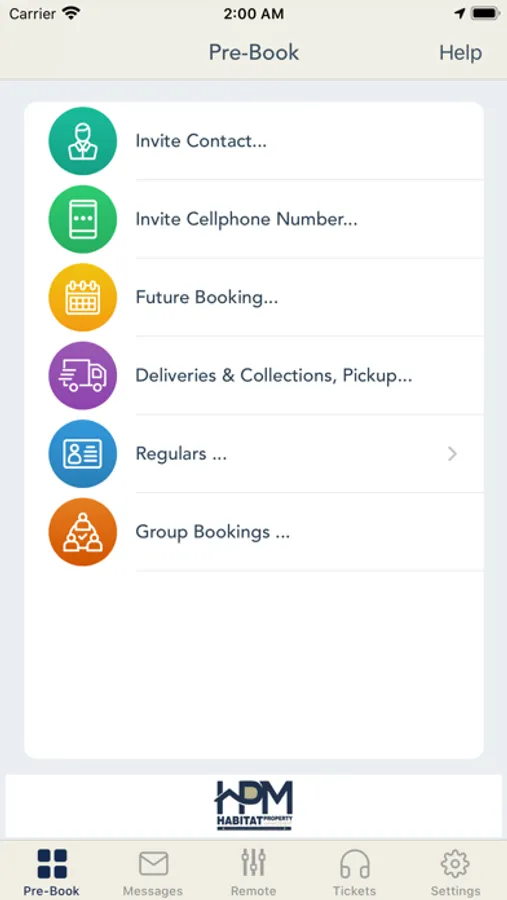 Habitat Property Management Access Control app provides registered residents with the functionality to invite visitors using their contacts on their phone. The app provides the functionality to send invitations via SMS, iMessage or WhatsApp.