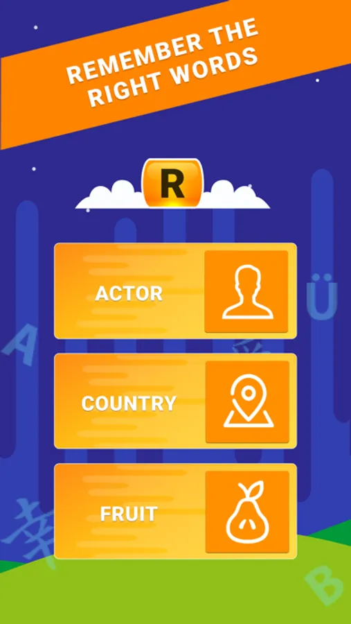 A game that will check your vocabulary. You need to remember as quickly as possible three words beginning with a randomly letter from your native language. The application contains enough words to make each round as varied as possible. You can play alone or with your family or friends. Check your erudition.