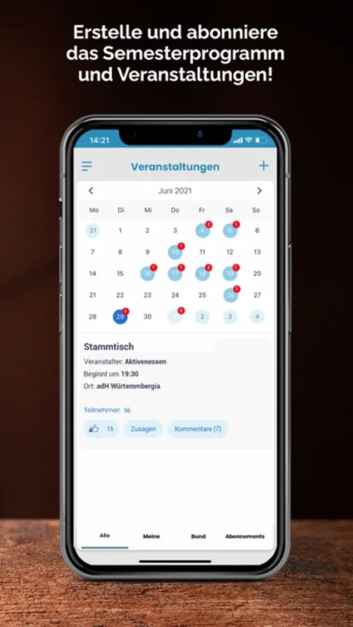 Die App für die Landsmannschaft Württembergia im CC.