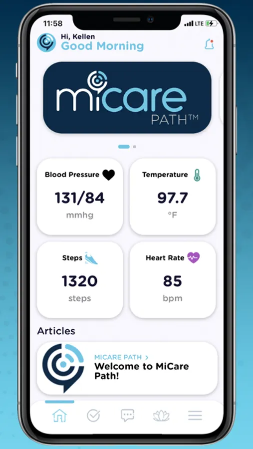 MiCare Path is a mobile health (mHealth) remote patient monitoring (RPM) application prescribed by participating specialty healthcare providers and clinics. This application supports data collected from cellular and Bluetooth approved devices, as well as Apple HealthKit.