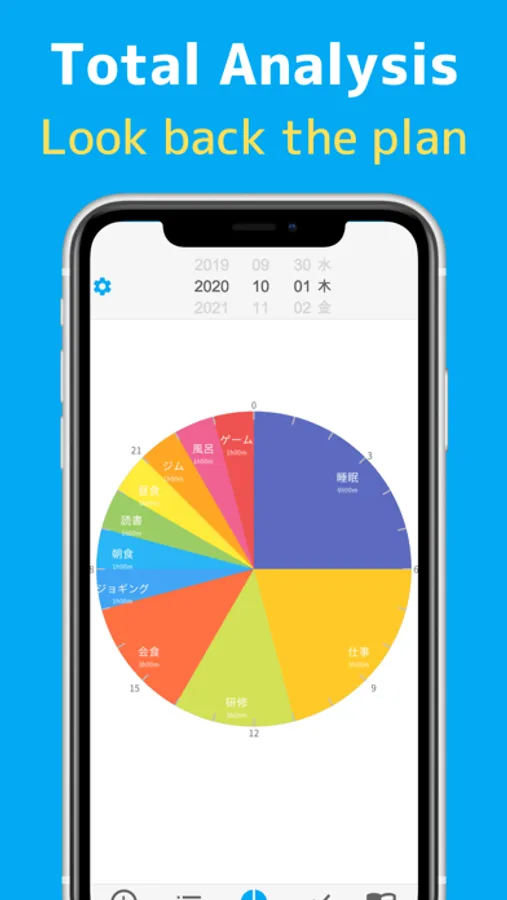 With automatic analysis, you can also display the total time and bar graph, so you can look back on the schedule of the day at the end of the day.