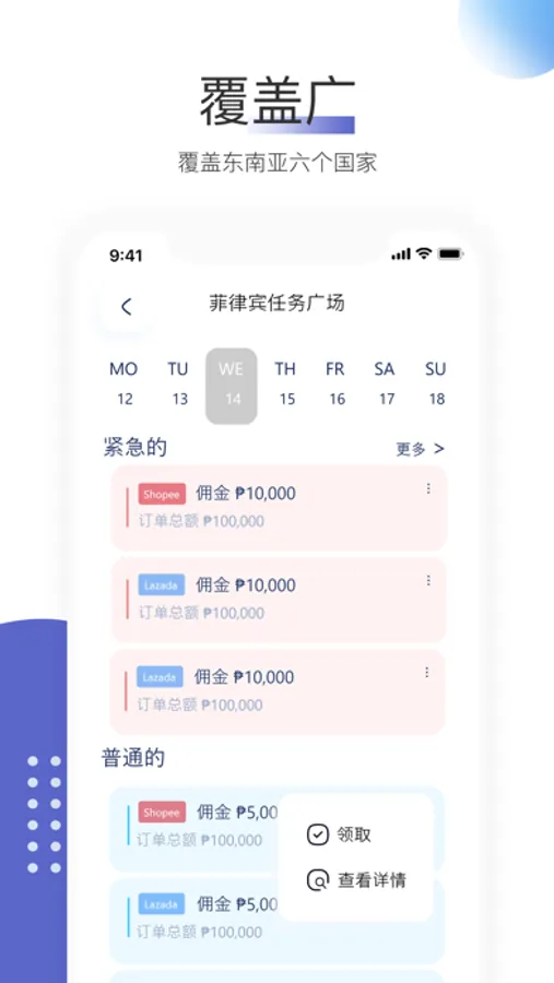 2.覆盖广,覆盖东南亚八个国家,任务信息实时更新