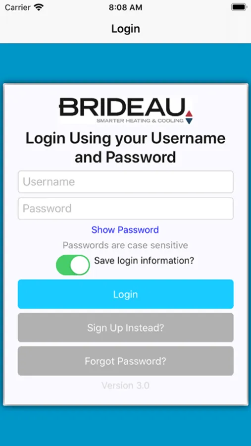 This is the Brideau Energy App. The app allows users to view information about their account, order fuel, request service, and make payments on their account using their device. Customers create a login for this app by using an account number that they obtain from registering on our website. There is no cost or fees to register and use this app.
